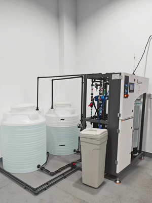 該系統(tǒng)配備500L大型儲水裝置,采用全封閉循環(huán)設(shè)計,每小時產(chǎn)水量達500升,可滿足規(guī)?;a(chǎn)需求。智能控制系統(tǒng)實時監(jiān)測水質(zhì)參數(shù),具備自動沖洗和報警功能。滲源工程師團隊還根據(jù)新能源生產(chǎn)工藝特點,特別優(yōu)化了管路系統(tǒng),確保水質(zhì)穩(wěn)定可靠。