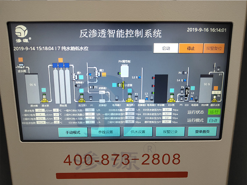 系統(tǒng)工藝:超純水設備采用預處理、反滲透技術、超純化處理以及后級處理四大步驟,多級過濾、離子交換單元、超濾過濾器、紫外燈、除TOC裝置、EDI電除鹽裝置等多種處理方法,使最終出水電阻率達18.25MΩ*cm。