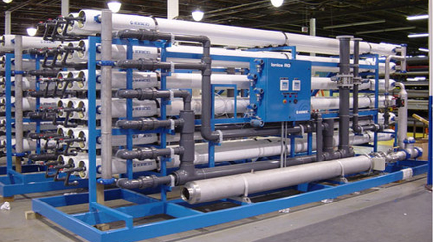 原水箱→原水提升泵→石英砂過(guò)濾器→活性炭過(guò)濾器→軟水器→精密過(guò)濾器→一級(jí)高壓泵→一級(jí)反滲透→級(jí)間水箱→二級(jí)高壓泵→中間水箱→EDI提升泵→微孔過(guò)濾器→EDI系統(tǒng)→EDI水箱→拋光混床→用水點(diǎn)