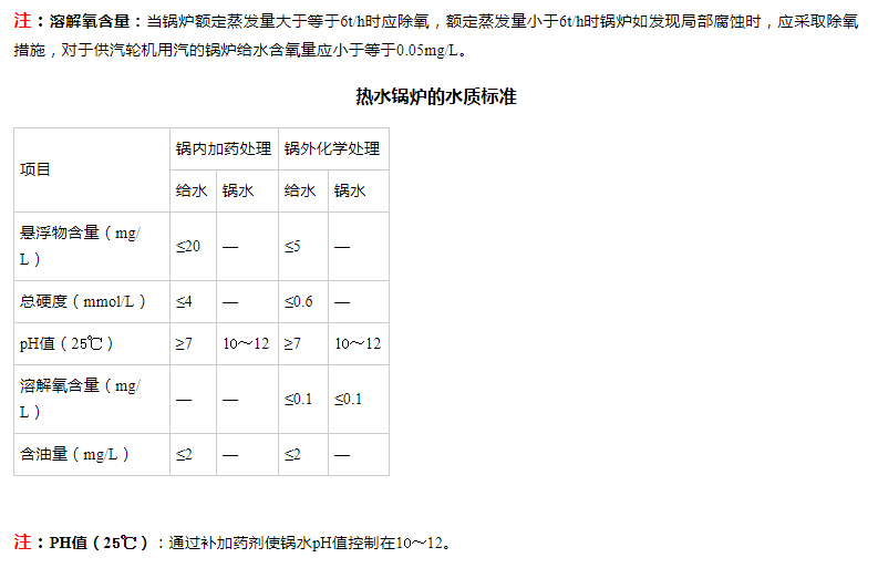 我國(guó)現(xiàn)行低壓鍋爐水質(zhì)標(biāo)準(zhǔn)為GB1576—1996,以水為介質(zhì)的固定式蒸汽鍋爐和汽水兩用鍋爐,也適用于以水為介質(zhì)的固定式承壓熱水鍋爐和常壓熱水鍋爐。