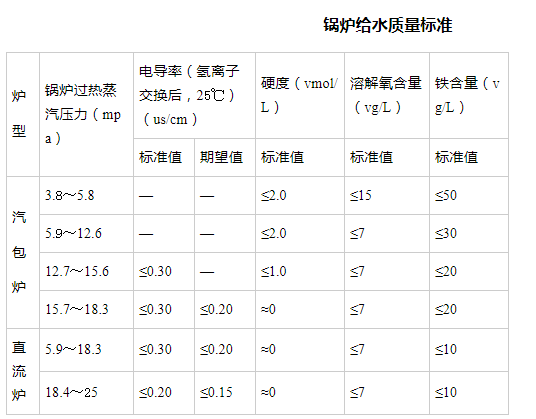 鍋爐水質(zhì)標(biāo)準(zhǔn)對(duì)照表
