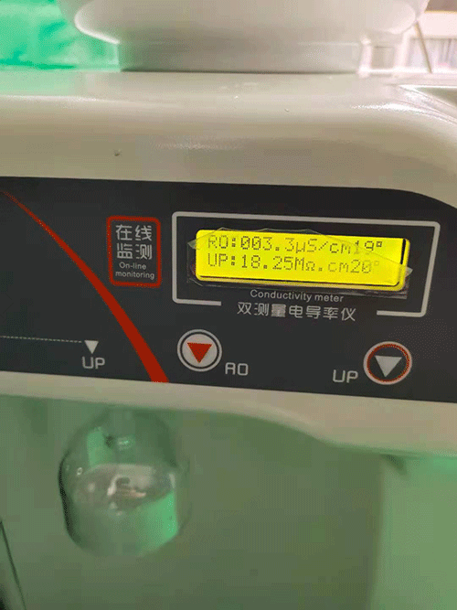 純水機(jī)的電導(dǎo)率是通過(guò)電導(dǎo)率在線檢測(cè)儀進(jìn)行監(jiān)測(cè)并顯示的,如果您的機(jī)器出水水質(zhì)檢測(cè)正常,但是電導(dǎo)率在線顯示卻出現(xiàn)負(fù)電導(dǎo)率,則說(shuō)明電導(dǎo)在線檢測(cè)儀出現(xiàn)故障,需要聯(lián)系廠家售后工作人員進(jìn)行監(jiān)測(cè)更換。